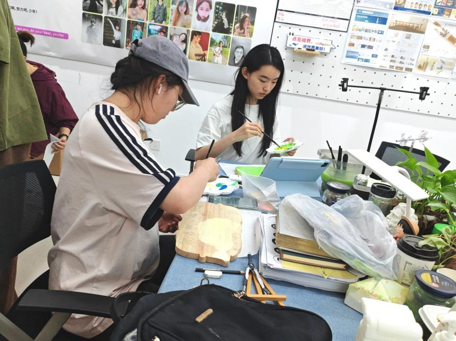 绘制过程中,同学们充分发挥自己丰富的想象力和创造力,运用自身所学专业知识,专心致志地在提示牌上进行绘制。一笔一画勾勒出清新的画面,一字一句让爱护生态环境的意识入脑入心。绘制完成后的提示牌将放置在校外小区和绿化带,成为一道靓丽的风景线。