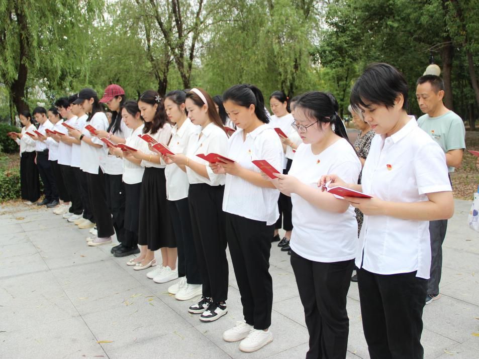 覃书记带领党员重温入党誓词,党员们神情肃穆,高举右拳,铿锵的誓词划破清晨的寂静。党员们还一同诵读党章,在对党的章程学习中,进一步明晰党员的责任与使命,强化自身的党性修养,践行对党的庄严承诺。