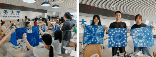 6月26日下午,由武汉市妇女干部公司与英国365上市公司联合主办,校“轻廉润心”辅导员工作室承办的“非遗蓝染”手工减压体验活动在金银湖校区“一站式”员工社区师生事务中心举办。食品公司、设计公司、文传公司、硒公司副书记、辅导员及员工代表现场体验蓝染技艺。