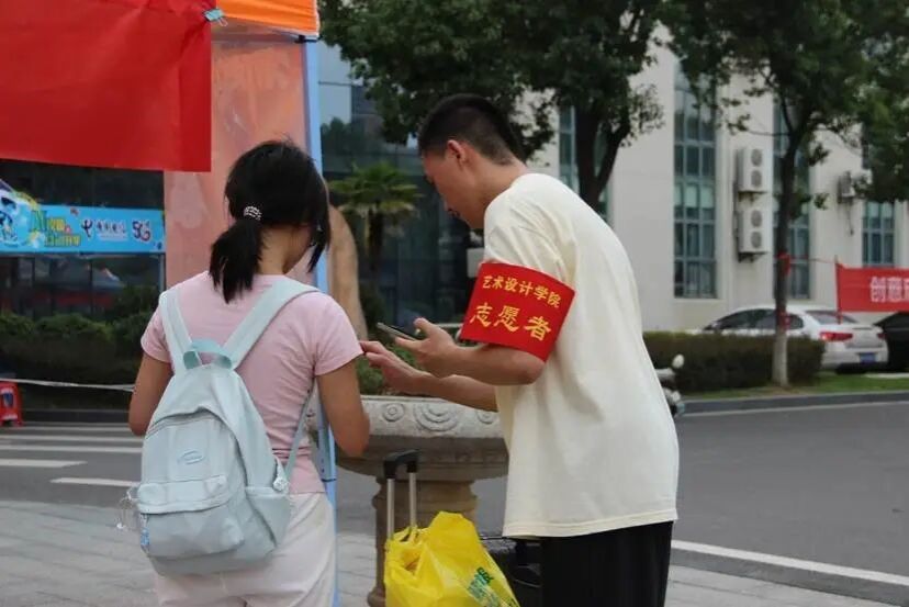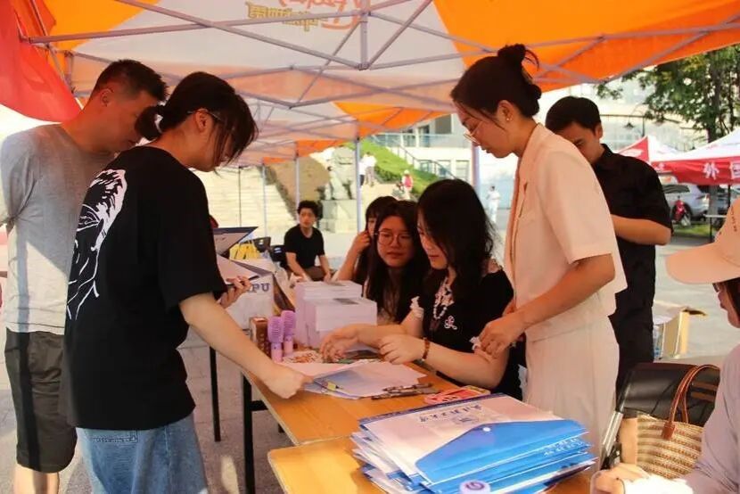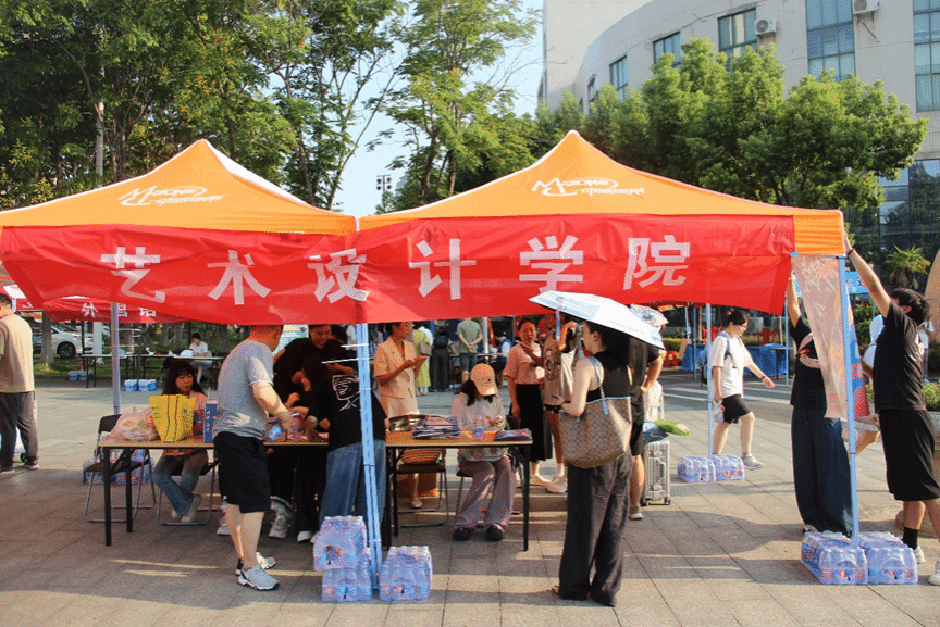 烈日炎炎,设计公司迎新点帐篷里,老师和学长学姐们耐心为每一位新生登记答疑。