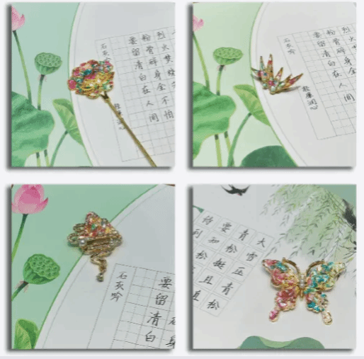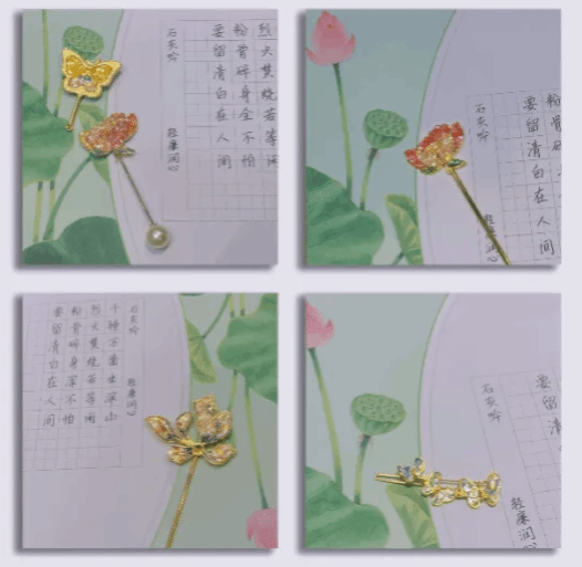 纯净高雅的莲花,坚固笔挺的翠竹……在昙华林社区金辰互助服务中心小陈老师的指导下,大家了解了螺钿工艺的历史脉络,并开始动手实践,根据个人喜好选择制作发簪、发夹或胸针等配饰。