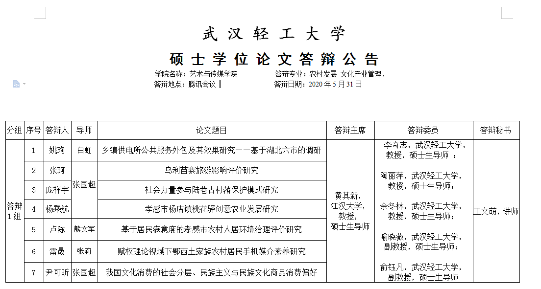 艺传公司硕士学位论文答辩公告